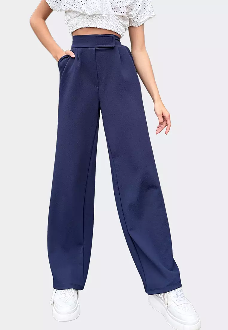 AlacatiHigh Waist Double Pocket Pleated Velcro Closure Palazzo Trousers229.00