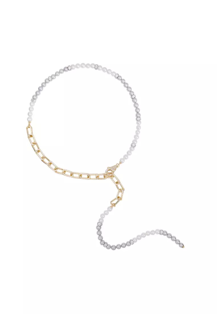 Plating: yellow gold, rhodium Material: 925 Sterling Silver, freshwater shell pearls, cubic zirconia Stones: round-shaped ARTĒ Gems, 1.2-3.5mm Pearl/s: 6mm x64pcs