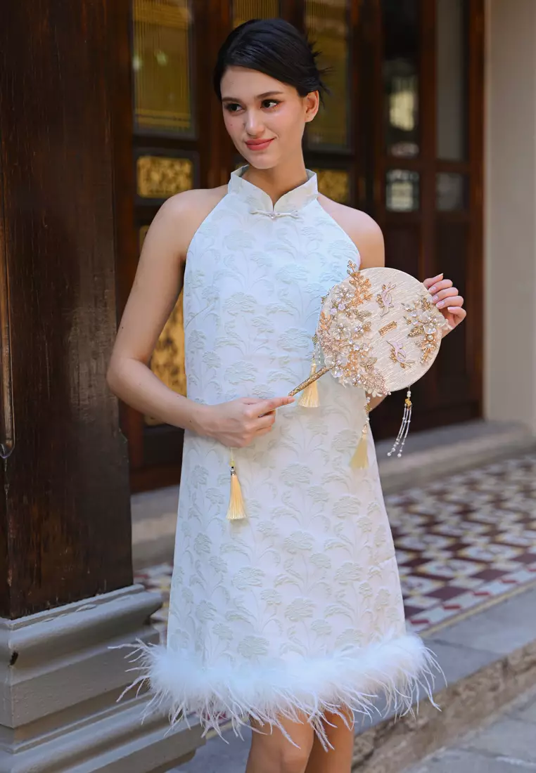 毛绒旗袍连衣裙