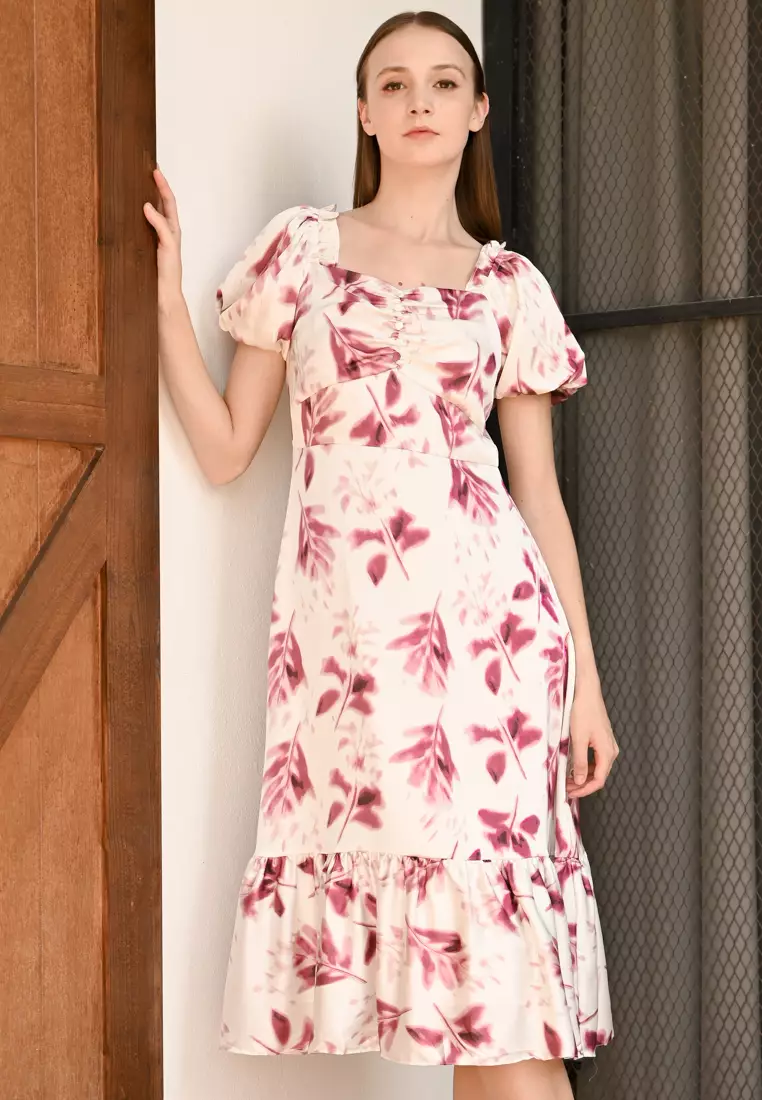 花卉泡泡袖连衣裙