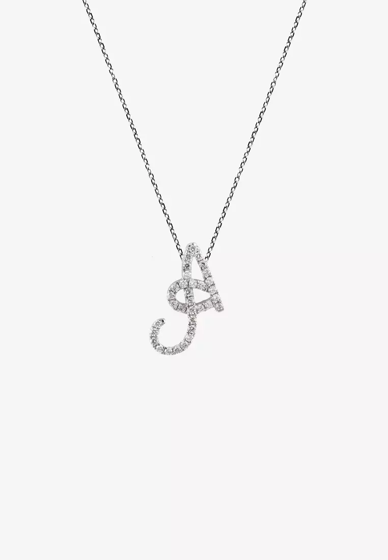 Pavé Lab Grown Diamond 'A' Initial Pendant in White Gold D/E-VVS/VS (0.22ct TDW) with chain