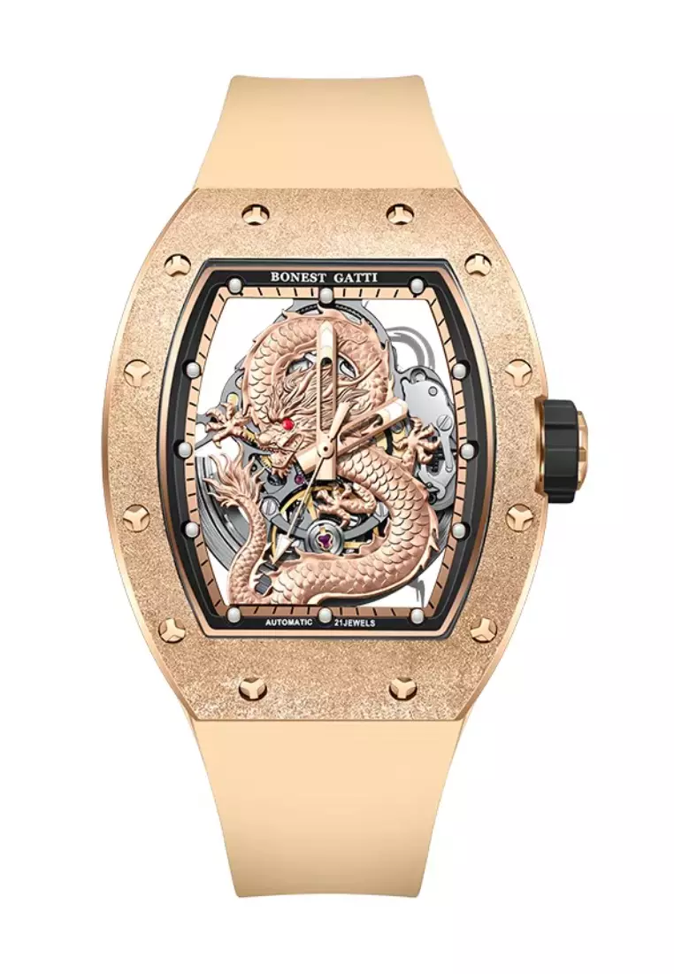 DRAGON 自動中性不鏽鋼手錶,橡膠錶帶