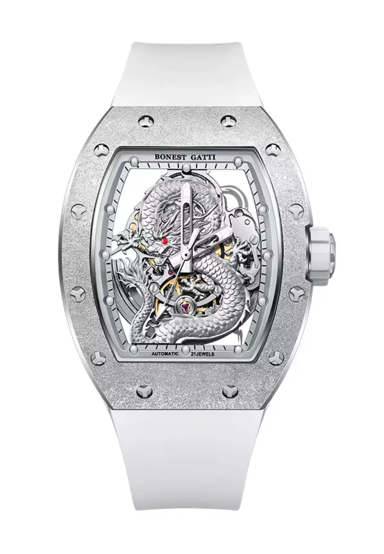 DRAGON 自動中性不鏽鋼手錶,橡膠錶帶