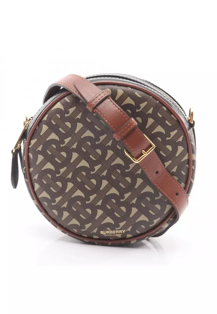 BurberryPre-Loved Burberry TB monogram round Shoulder bag PVC leather beige Brown black5584.00