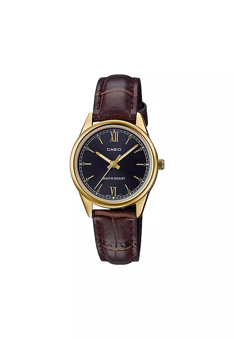 Women's Analog Watch LTP-V005GL-1B2 Brown Leather Band Watch for ladies