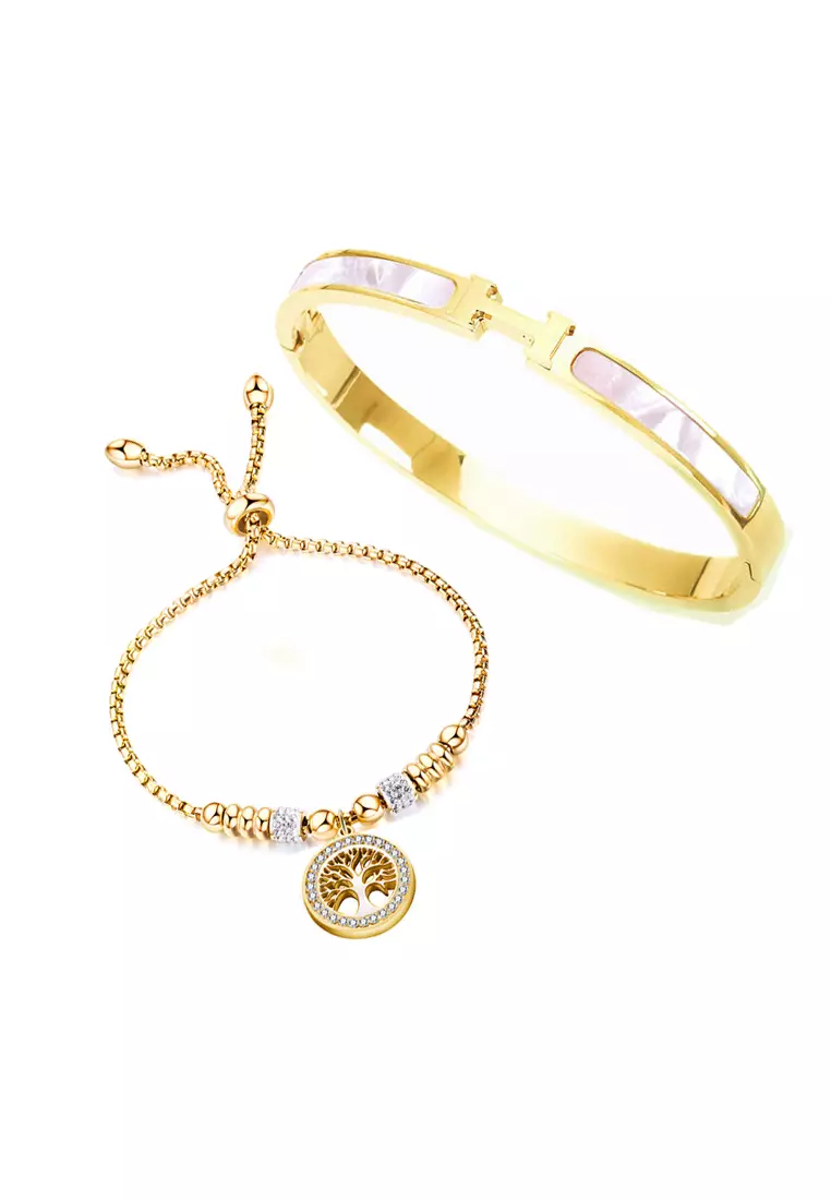 Titanium, 18K Gold Plated, Mother of Pearl, Zirconia