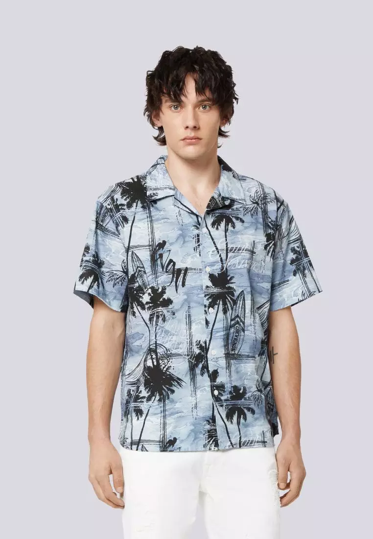 男裝寬鬆款熱帶海灘全印花夏威夷恤衫