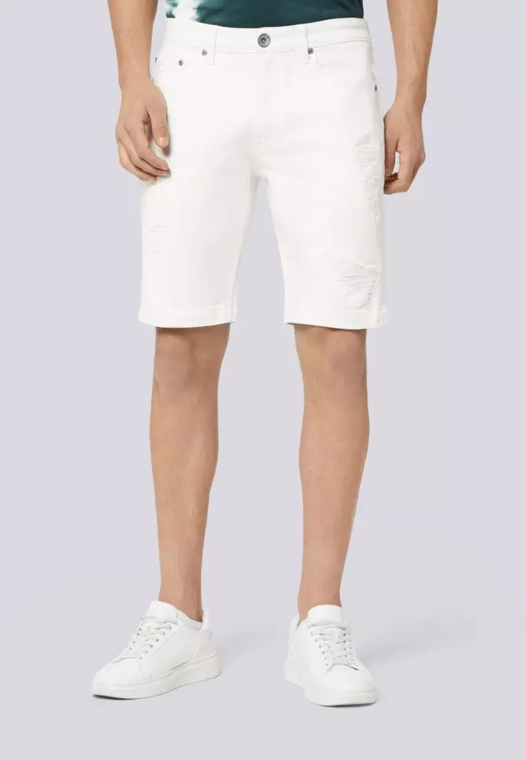 男裝復古破洞白色牛仔短褲