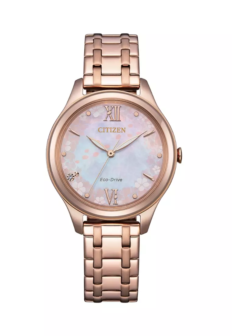 CitizenCitizen 西鉄城光動能櫻花限定系列櫻花圖案錶面設計珍珠貝殼錶盤粉紅金電鍍不鏽鋼錶帶女士腕錶 EM0508-98W2730.00