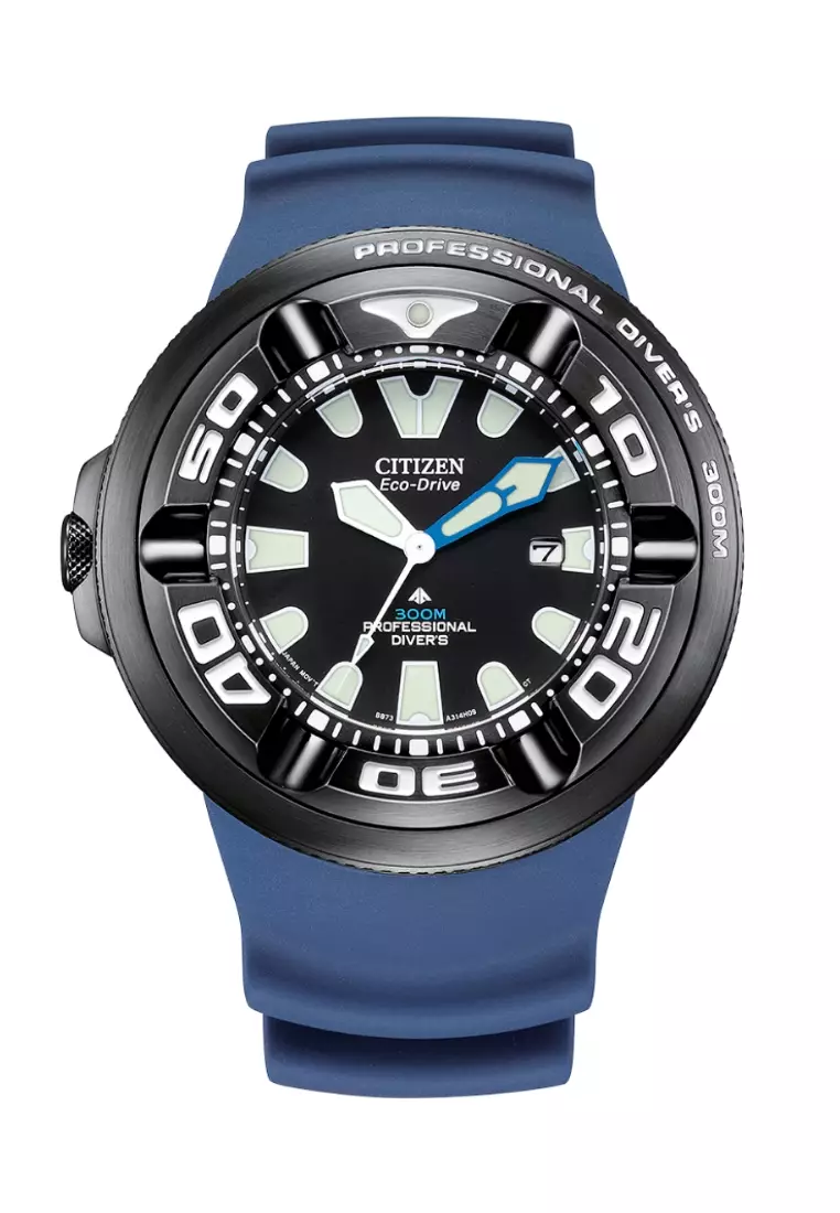 Citizen 西鉄城 Promaster 系列300米防水專業潛水 EcoZilla 黑色錶盤藍色合成橡膠錶帶光動能男士腕錶 BJ8055-04E
