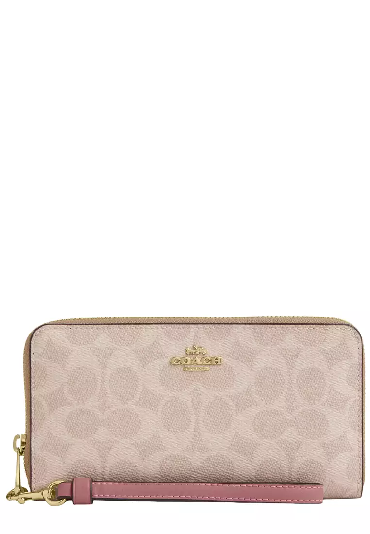 Long Zip Around Wallet In Signature Canvas - Sand/ Peony CW778