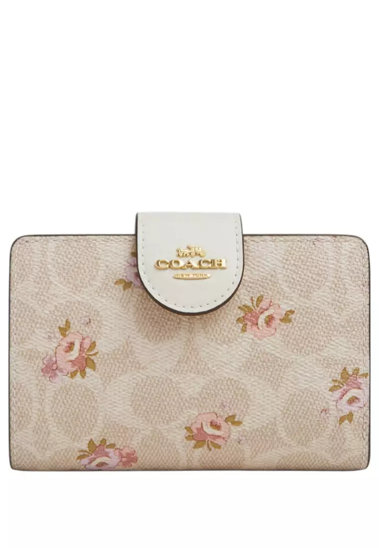 CoachMedium Corner Zip Wallet In Signature Canvas With Floral Print - Sand/Multi1659.001365.00