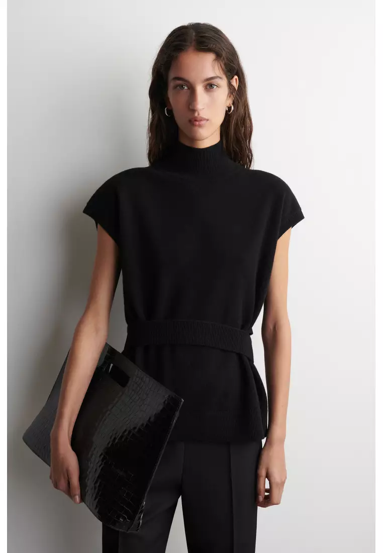 BELT-DETAIL FUNNEL-NECK WOOL VEST