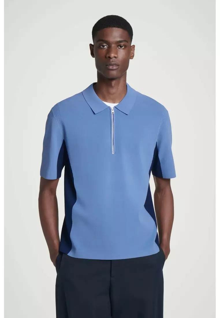 MESH-PANEL ZIP-UP POLO SHIRT