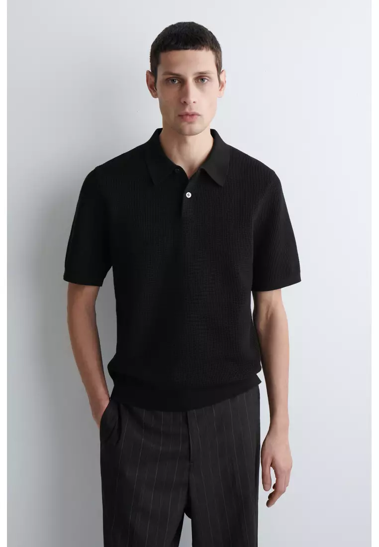 WAFFLE-KNIT COTTON POLO SHIRT