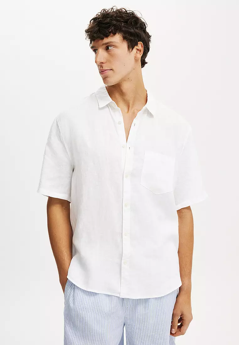 寬鬆亞麻短袖恤衫