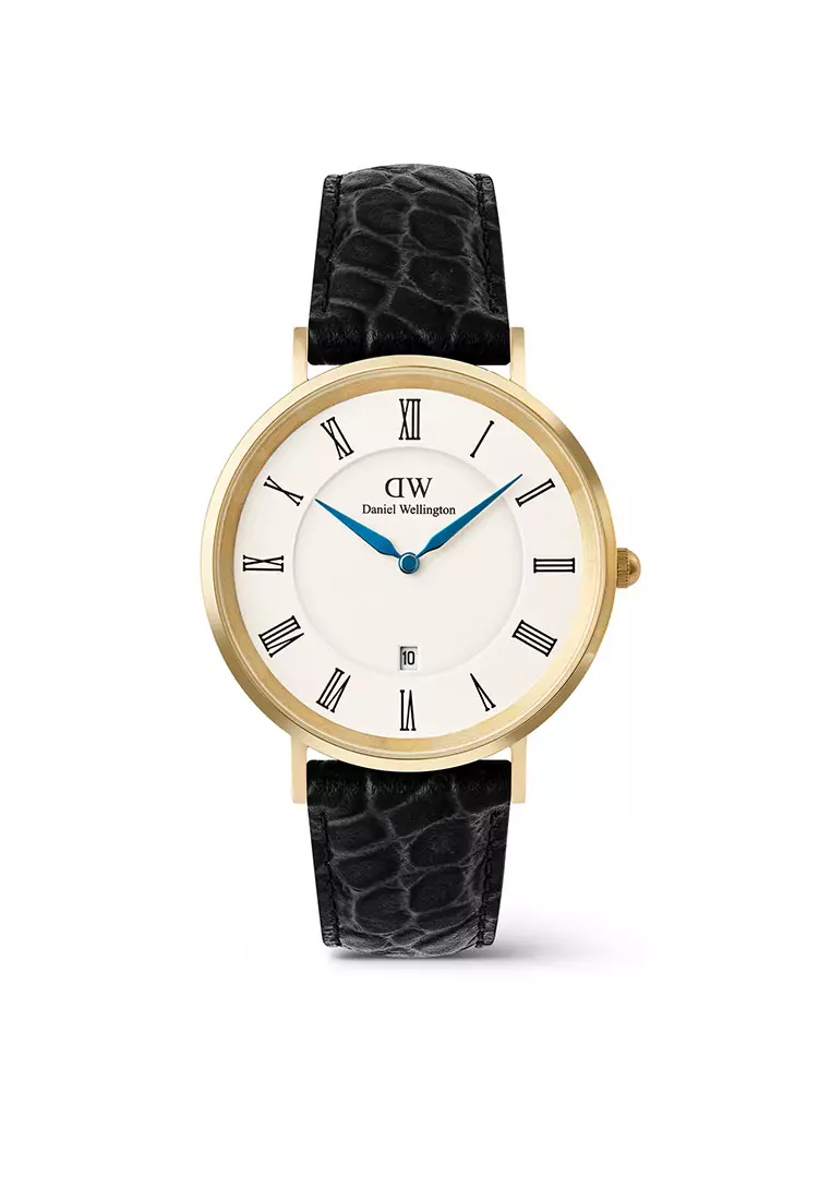 Classic 40mm Roman Numerals Date Black Croc Belly Gold - Men Watch stainless steel Leather strap watch DW Official Authentic Original 男士手錶 不銹鋼 真皮 手錶 DW 官方 正品