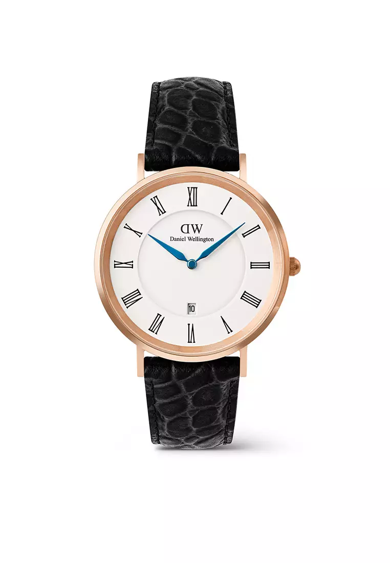 Classic 40mm Roman Numerals Date Black Croc Belly Rose Gold - Men Watch stainless steel Leather strap watch DW Official Authentic Original 男士手錶 不銹鋼 真皮 手錶 DW 官方 正品