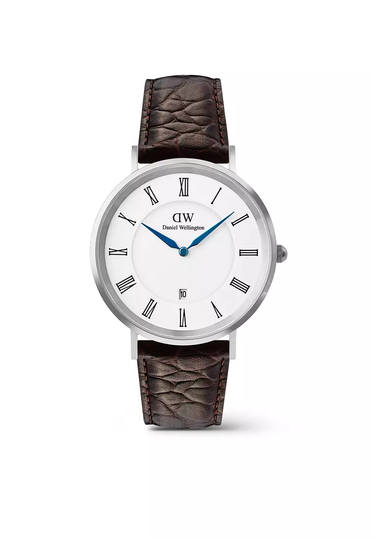 Classic 40mm Roman Numerals Date Dark Brown Croc Belly Silver - Men Watch stainless steel Leather strap watch DW Official Authentic Original 男士手錶 不銹鋼 真皮 手錶 DW 官方 正品