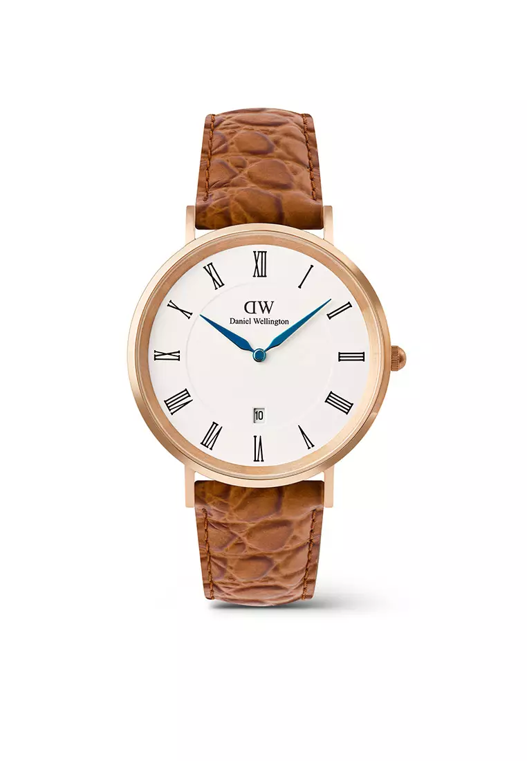 Classic 40mm Roman Numerals Date Light Brown Croc Belly Rose Gold - Men Watch stainless steel Leather strap watch DW Official Authentic Original 男士手錶 不銹鋼 真皮 手錶 DW 官方 正品