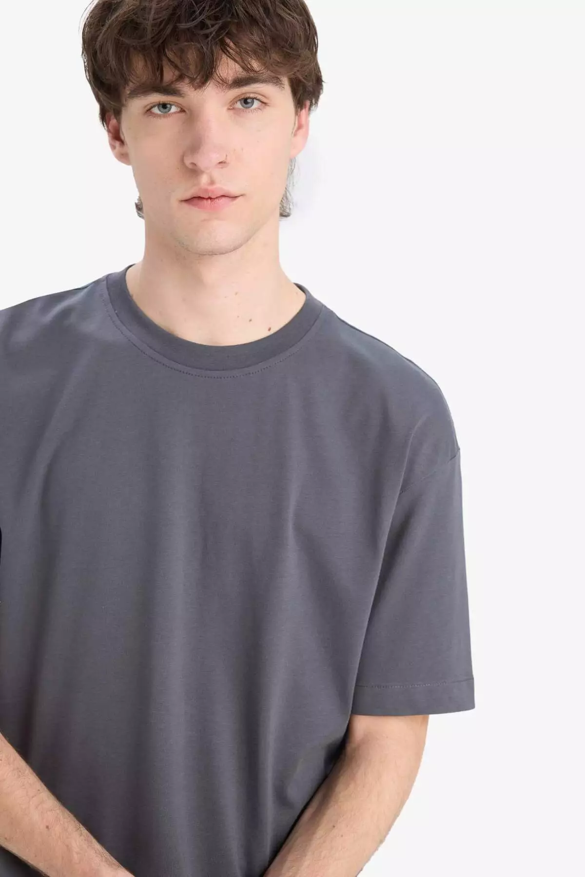 100% 棉 寬鬆闊管圓領基本款淨色短袖T恤 E6885Axns