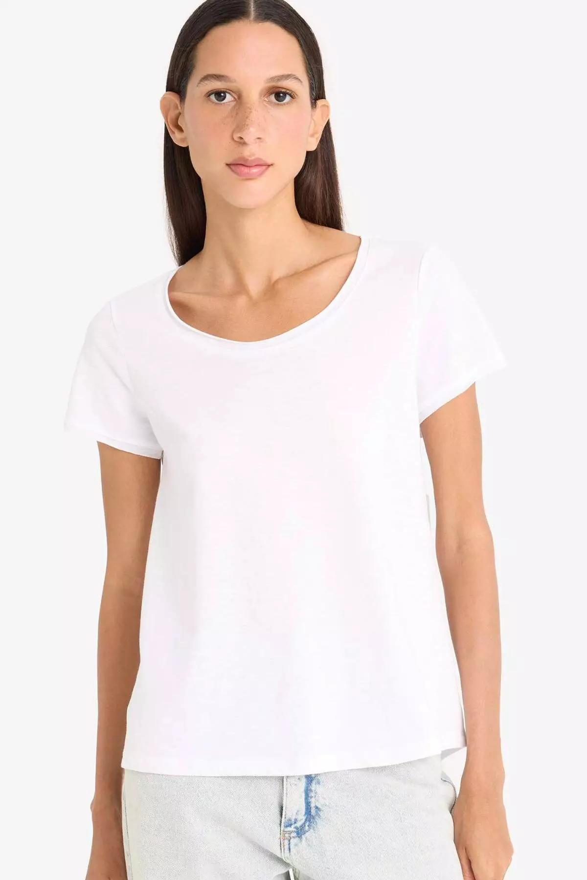 標準剪裁圓領基本款淨色短袖白色T恤 K1508Az25Sm