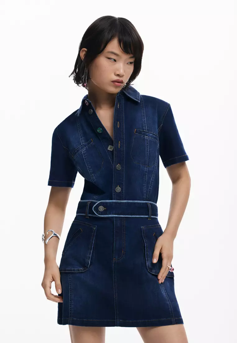 Denim mini dress with belt