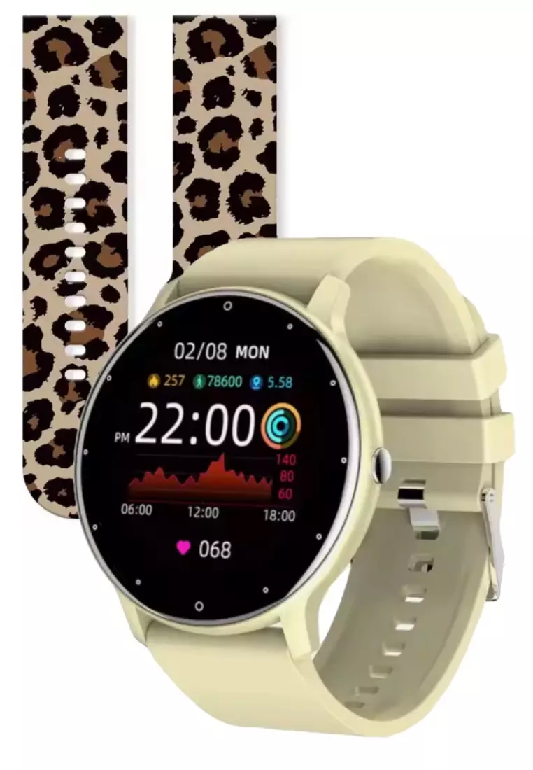 粉紅色女士智慧手錶 - 配有 2 條易於更換的矽膠錶帶