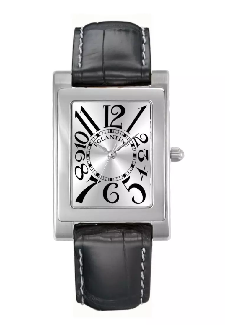 MATIGNON 中性石英錶,銀色錶盤搭配黑色阿拉伯數字,黑色皮革錶帶
