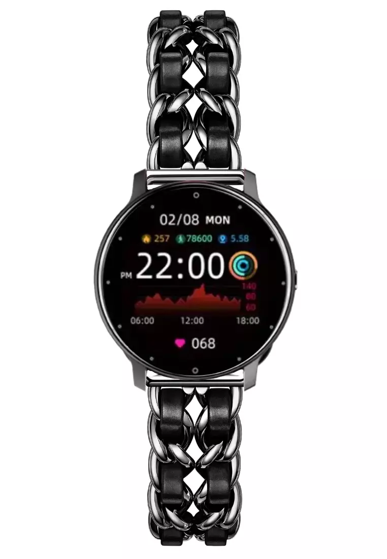 Zalora獨家發售 - 女士智慧手錶 - 金屬皮革錶帶 + 贈送1條黑色橡膠錶帶