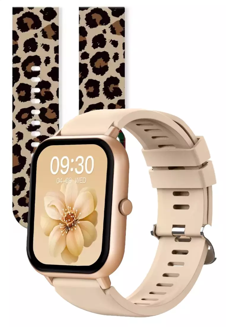 Zalora 特價 - IOS/Android 黑色智慧手錶,搭配 2 條橡膠錶帶(豹紋/象牙色)