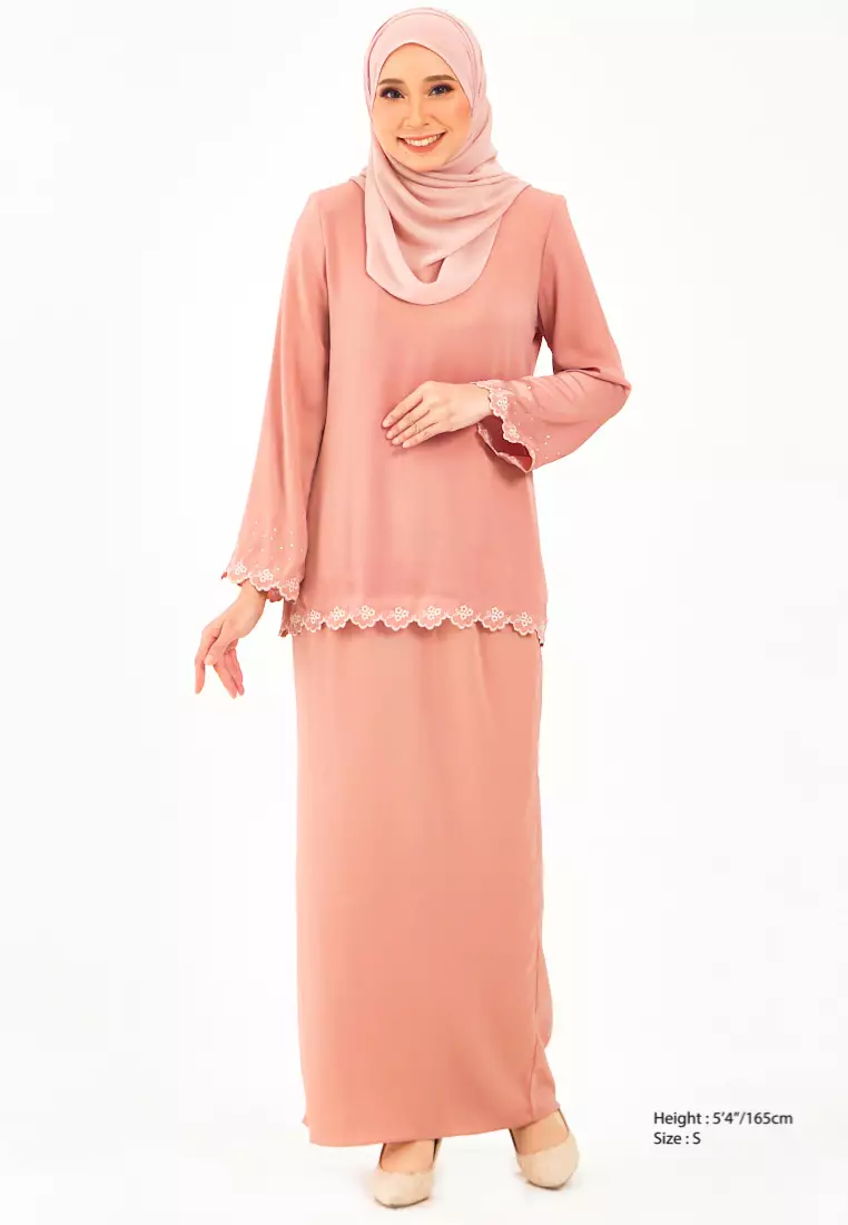 Hand wash to prevent any detailing damage. Use low temperature while ironing our kurung to prevent fabric damage