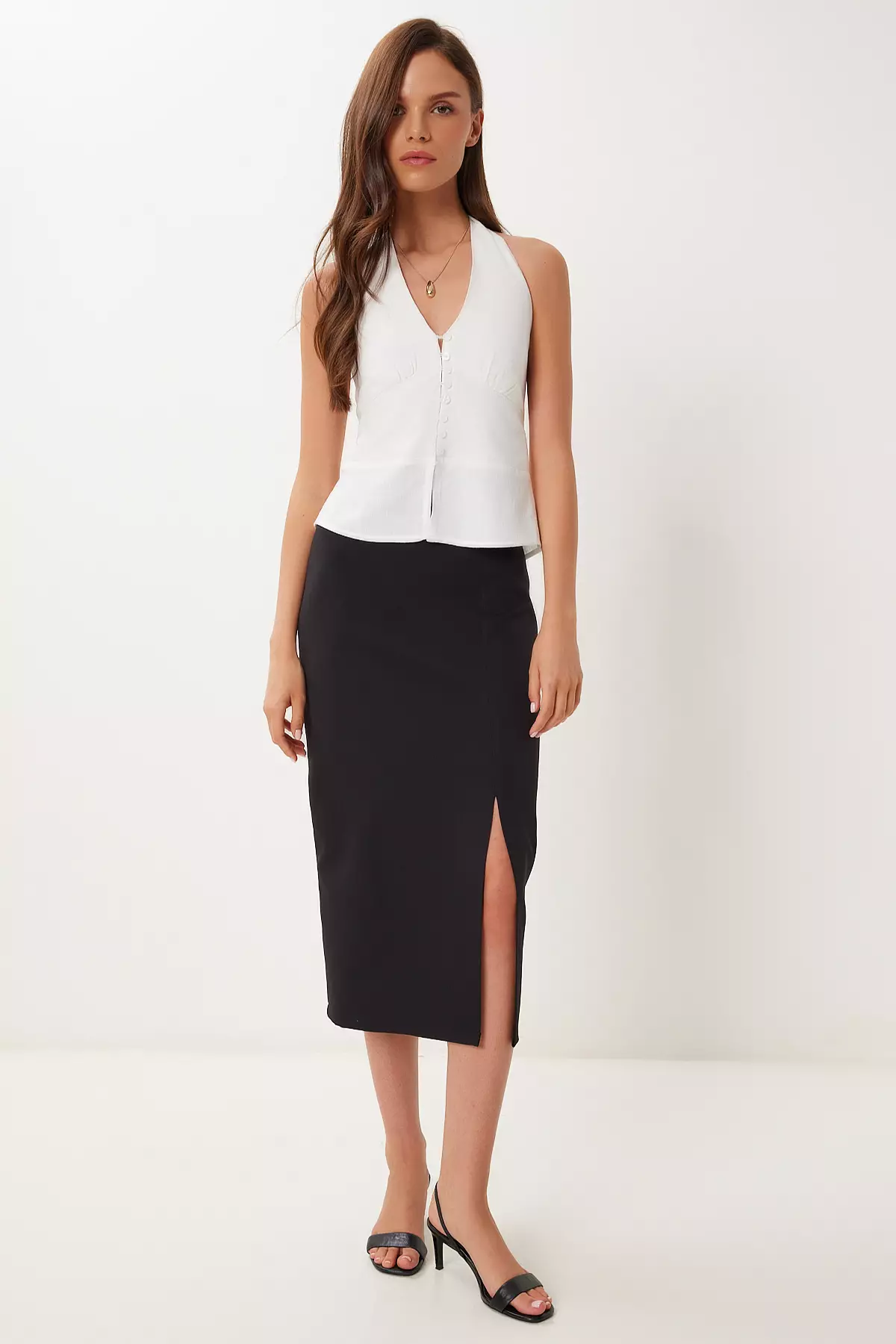 Happiness IstanbulWomen's Black Slit Woven Pencil Skirt Rv00211249.00