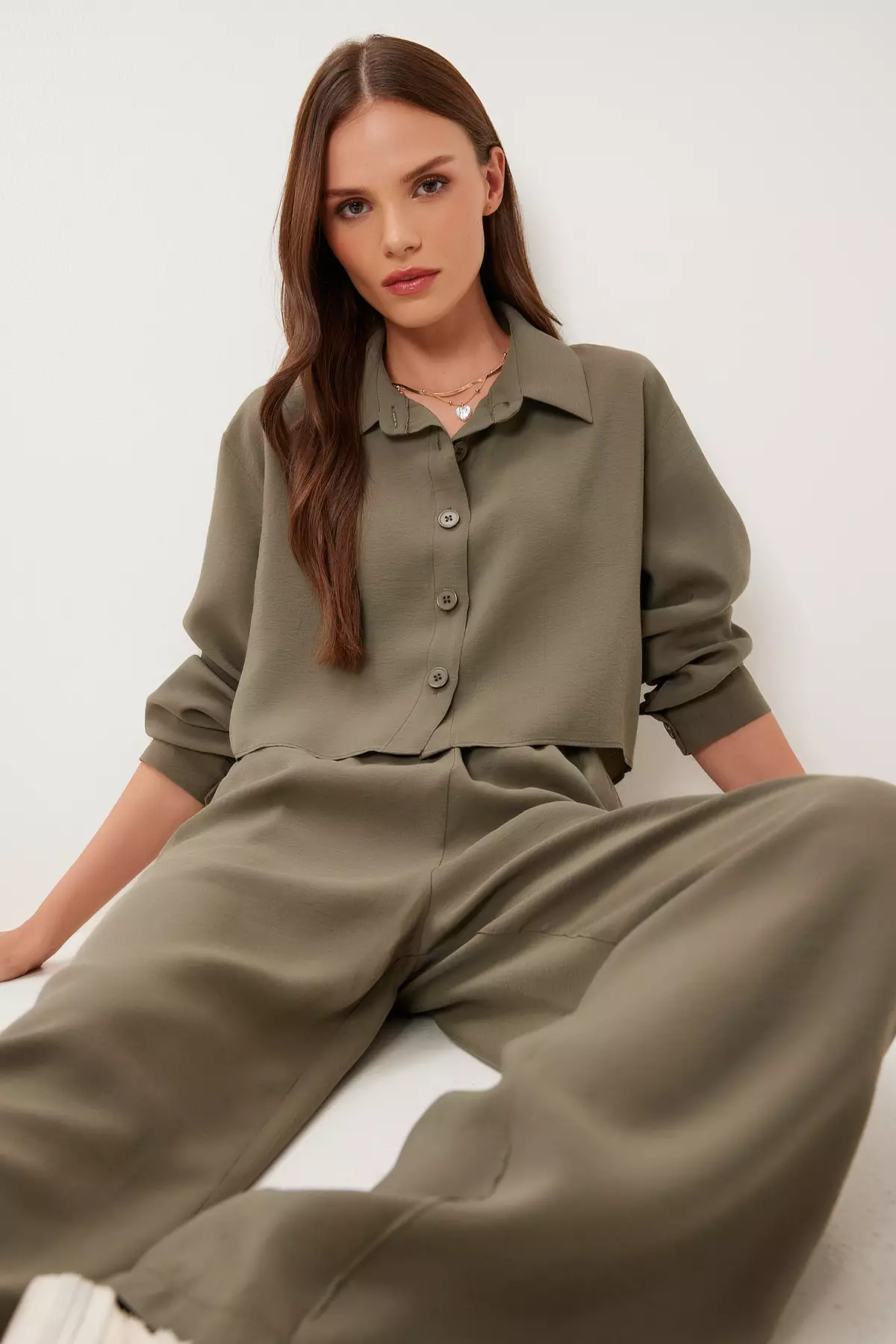 Women's Khaki Modal Shirt Pants Suit Bv00158