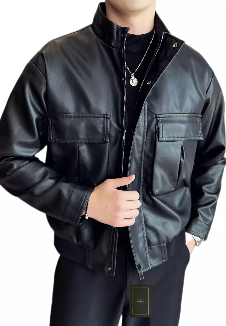 男士仿皮立領皮褸 MJ6803