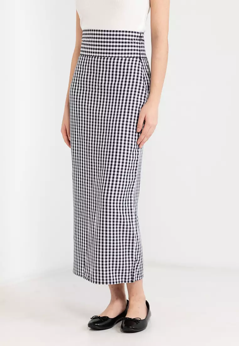高腰格子開衩窄裙