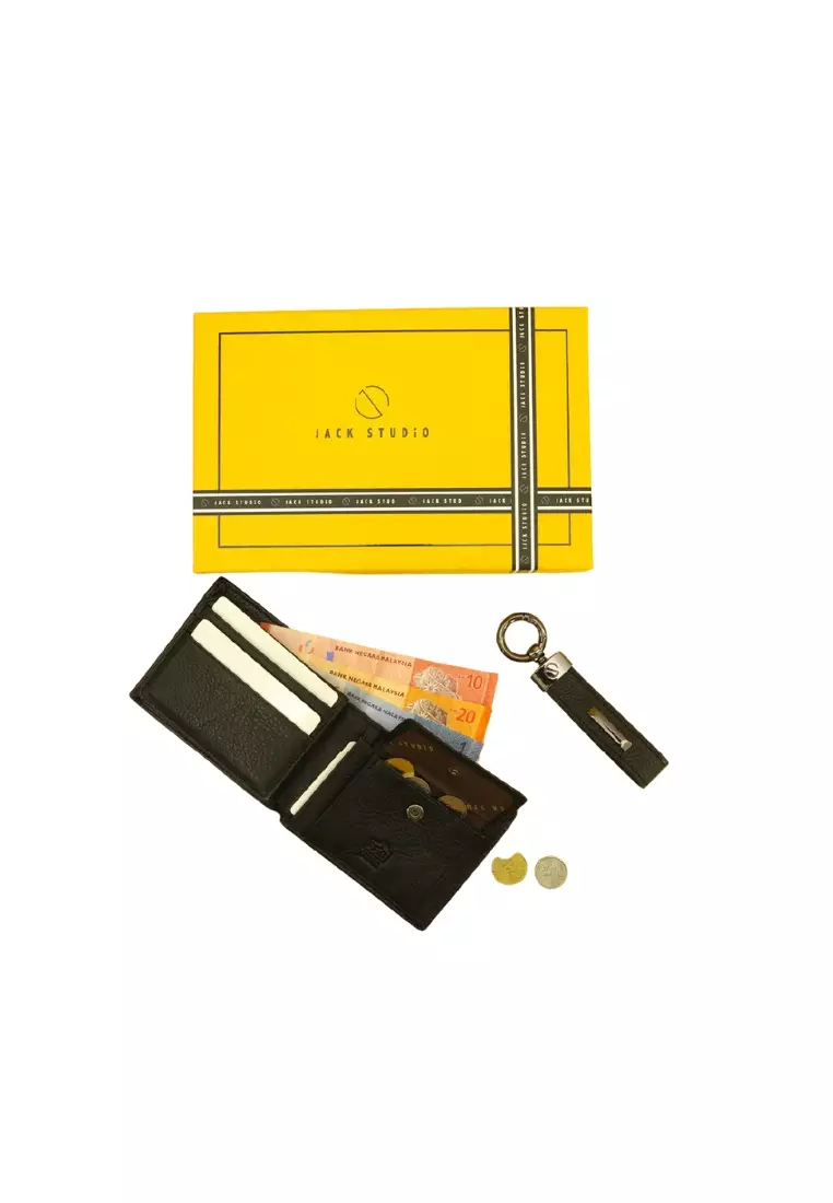 Jack Studio Men's Exclusive Leather ID Coin Wallet Keychain Gift Set JWC 41056