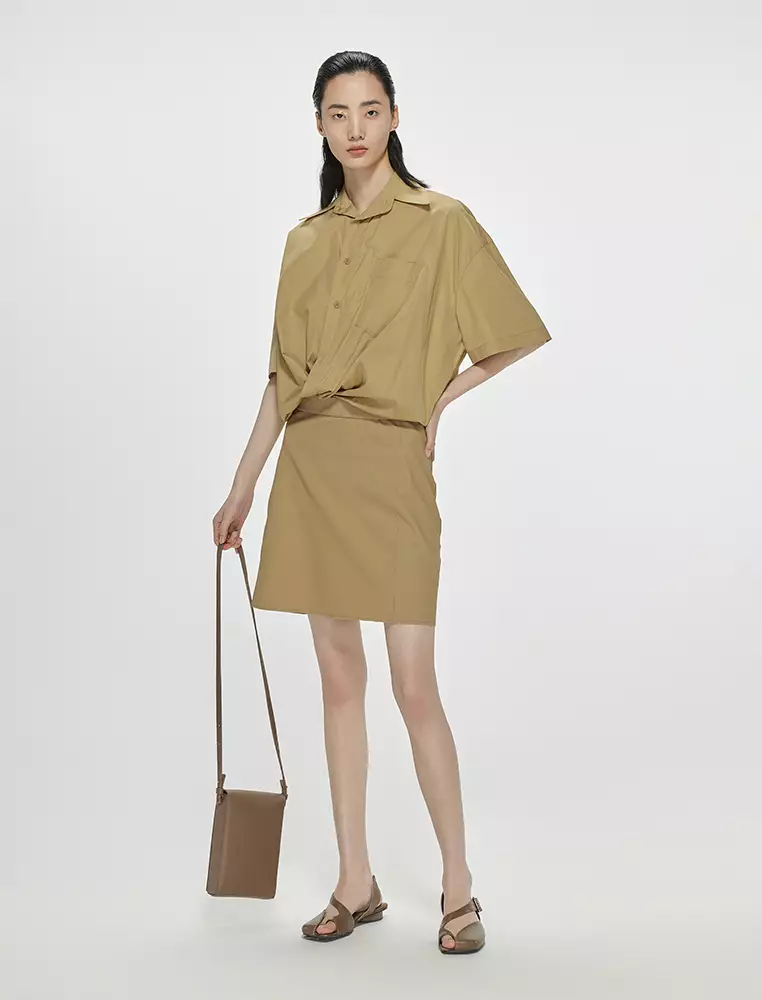 府綢X型OVERSIZE優雅短袖連衣裙
