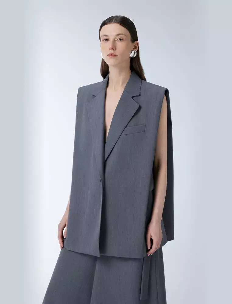 Outer fabric: Polyester 52%, Sheep wool 48% (excluding fusible interlining), Lining: Polyester 100%
