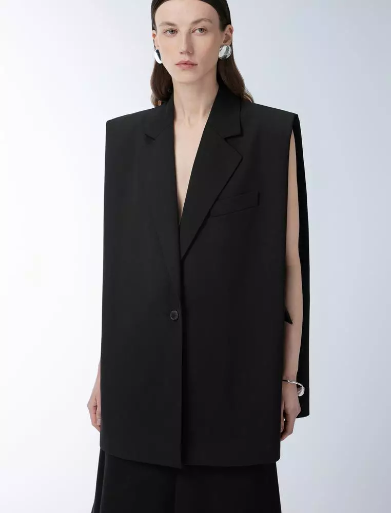 Outer fabric: Polyester 52%, Sheep wool 48% (excluding fusible interlining), Lining: Polyester 100%
