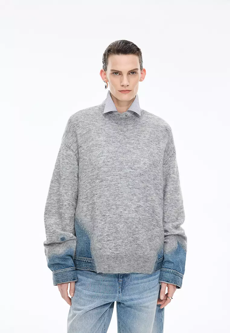 (Knit) 34% Mohair, 33.3% Wool, 29.3% Nylon, 3.4% Spandex (excluding rib); (Denim) 100% Cotton