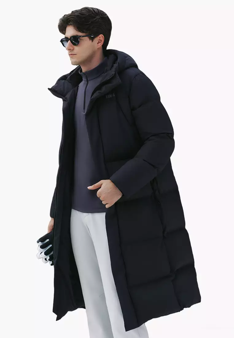 男裝 K-SWISS LOGO 防風長版鵝絨羽絨外套
