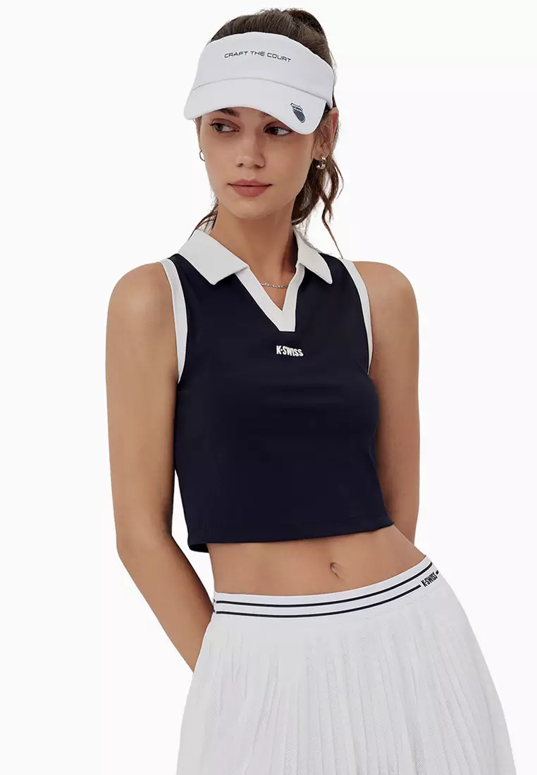 女裝 K-SWISS LOGO 拼色網球風POLO背心 無袖上衣