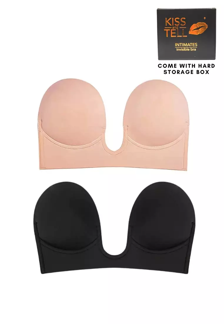 Kiss & Tell2 Pack Plunging Push Up Nubra in Nude and Black Seamless Invisible Reusable Adhesive Stick on Wedding Bra 隐形聚拢胸527.00