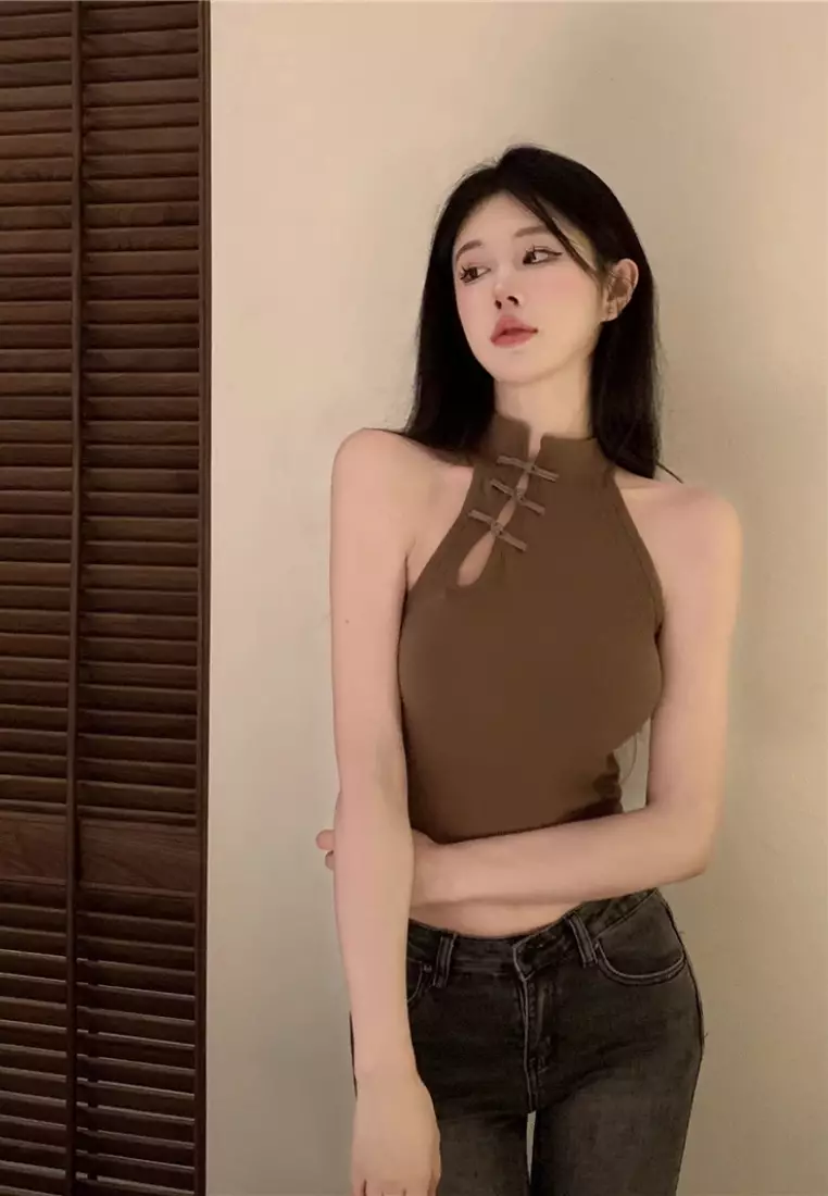 Premium Scarlett Cheongsam Soft Rib Corset Top Bralette in Brown