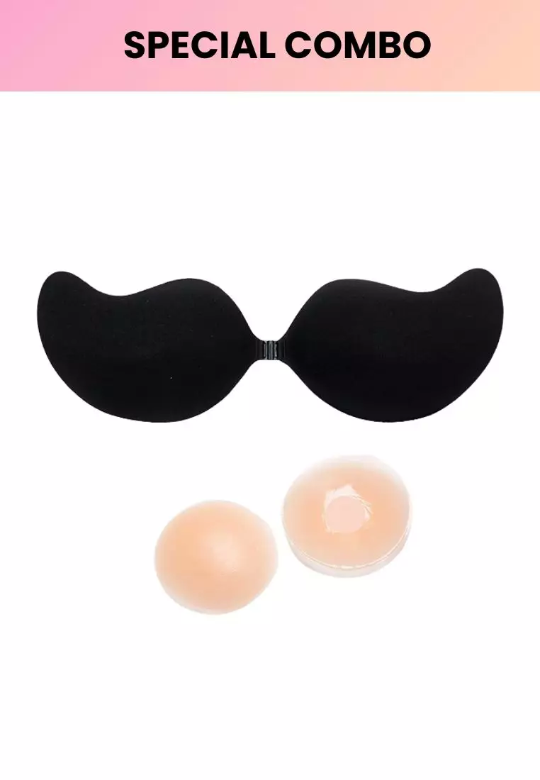 Special Bundle Emilia Wing Push Up Nubra in Black Seamless Invisible Reusable Adhesive Stick on Wedding Bra and Nipple Silicone