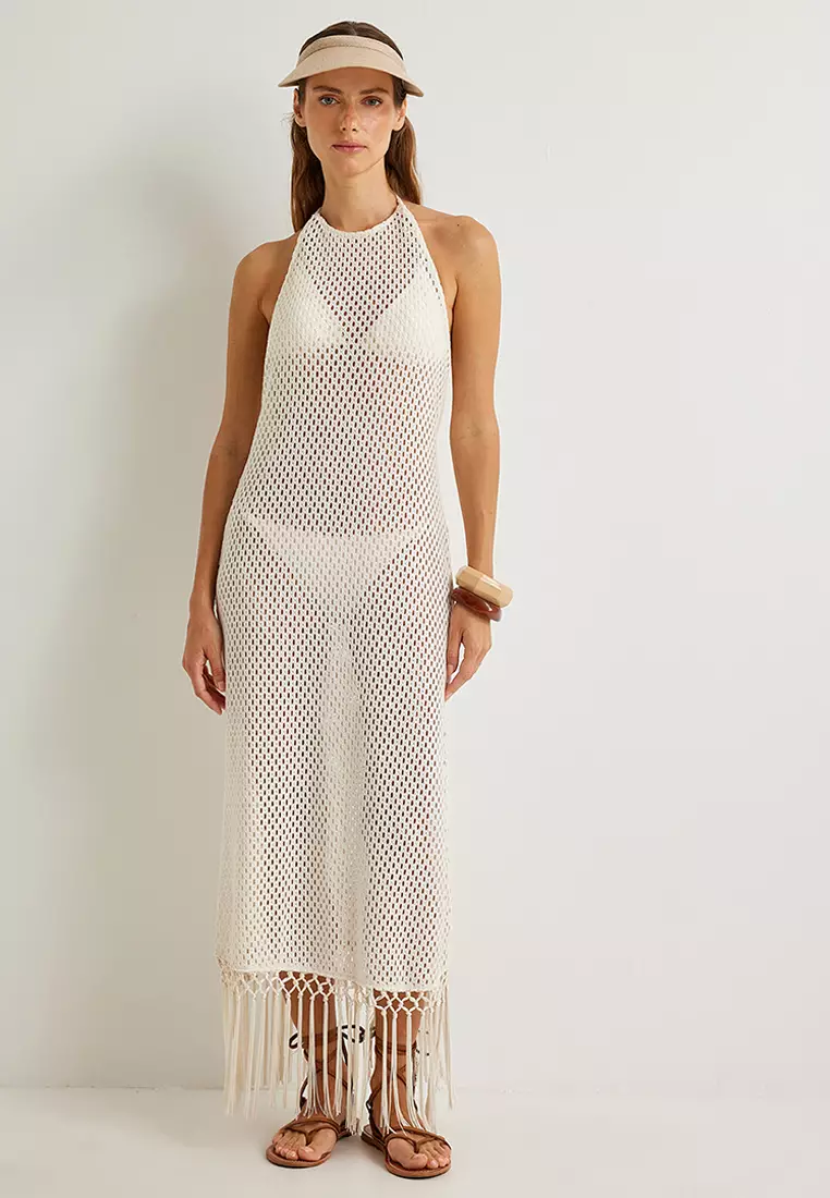 Crochet Halter Collar Tasseled Beach Dress