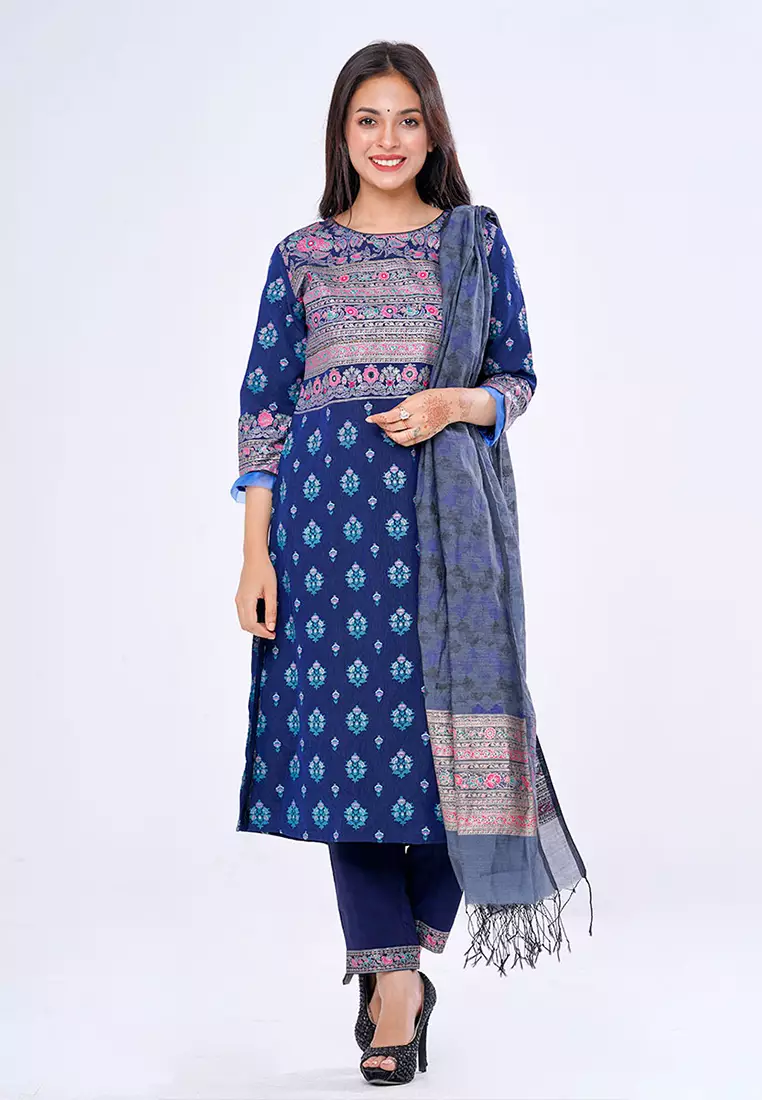 Tunic & Bottom: Crepe; Scarf: Half Silk