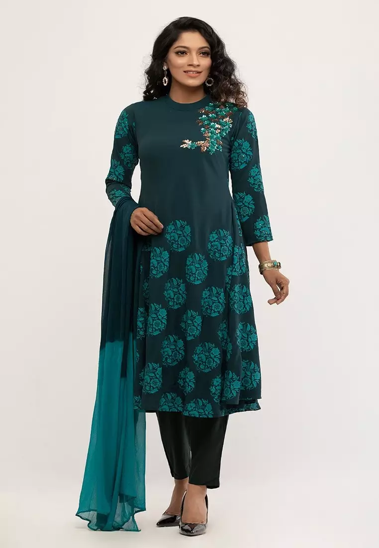 Tunic: Georgette; Bottom: Viscose; Scarf: Chiffon