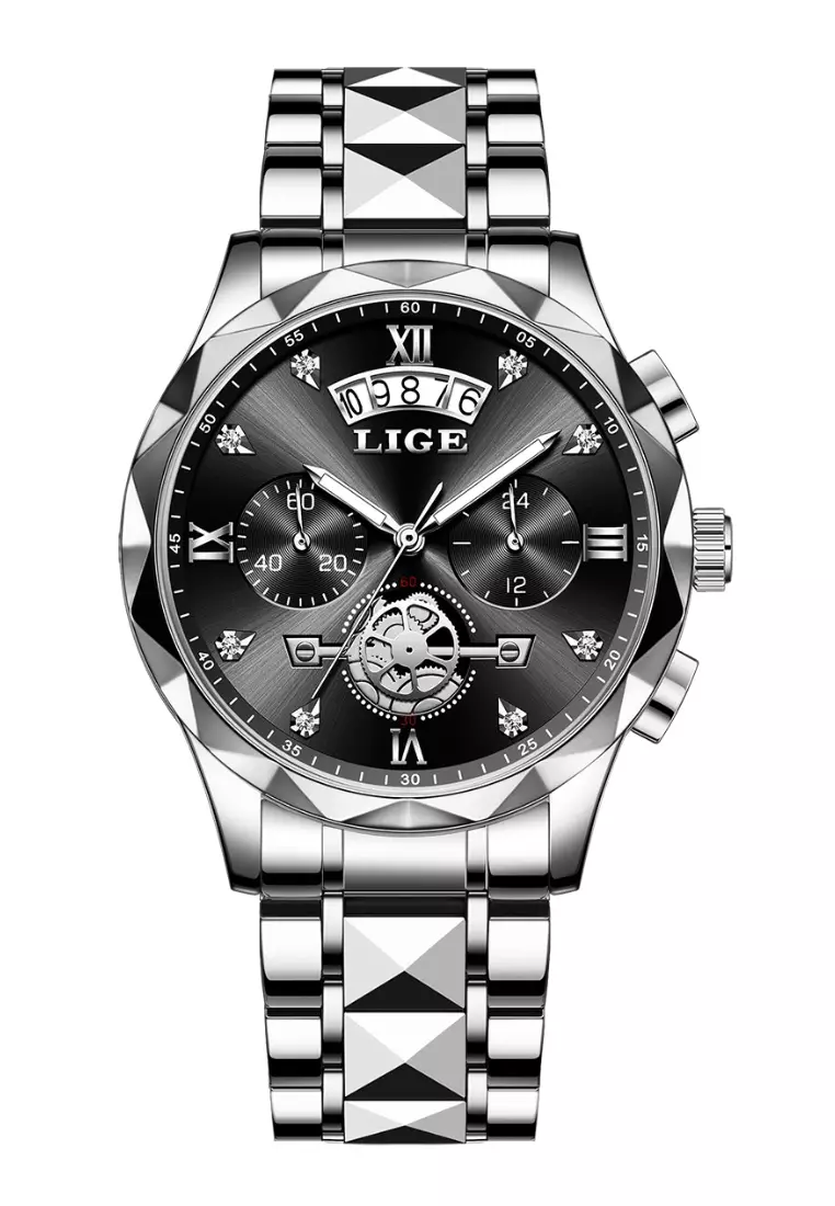 计时码表男女通用 和不锈钢石英表,日期,不锈钢表带